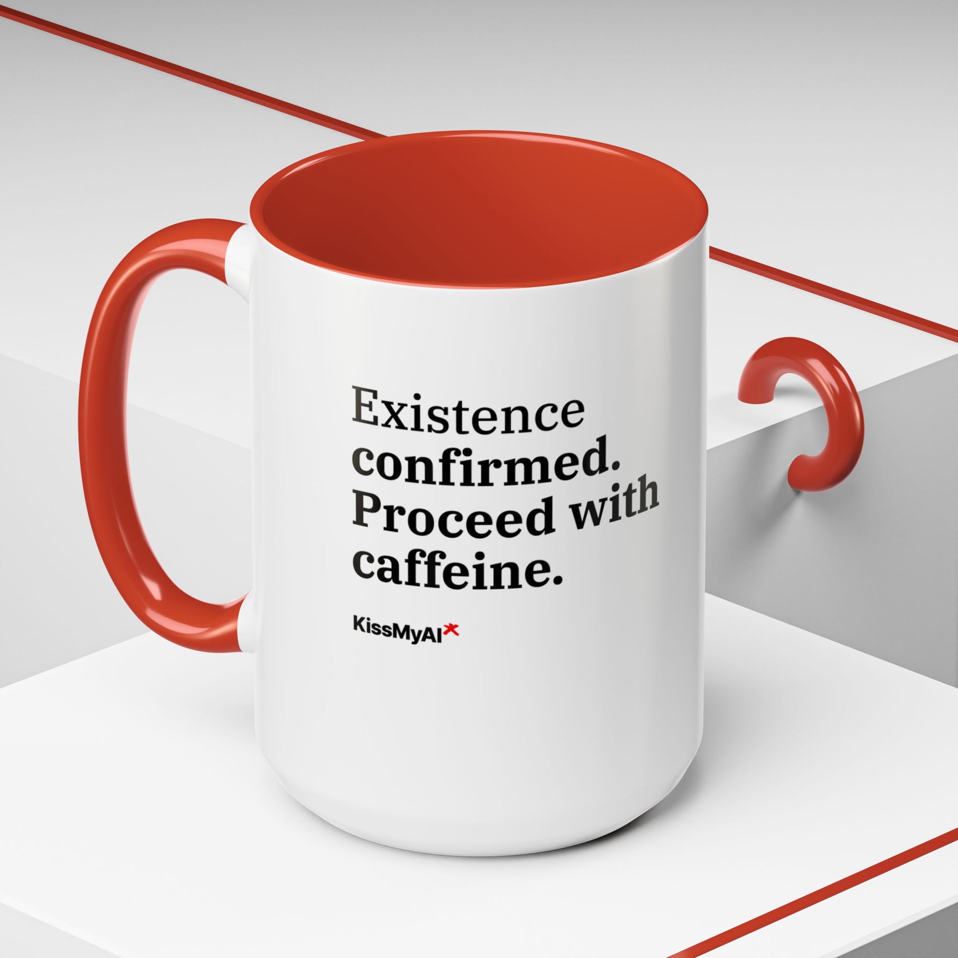 Existence Confirmed. Proceed With Caffeine. — Accent Coffee Mug (11oz / 15oz)
